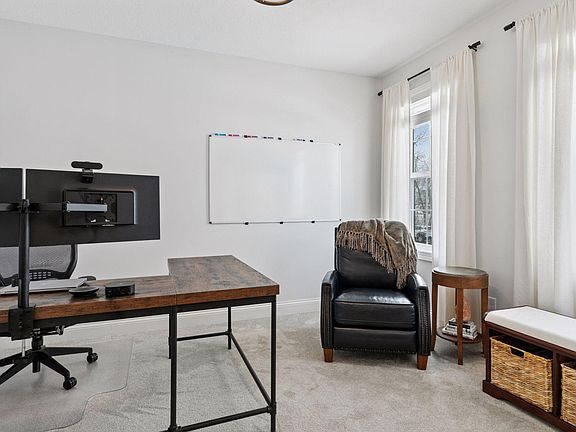 Stunning walkout two-story home on an awesome lot! Step inside to the welcoming entryway, where French doors open to the spacious home office. The entryway flows into to an expansive living room and kitchen, both with engineered hardwood floors. The open floor plan, large windows, and south facing exposure allows natural light to fill the area. The living room features a coffered ceiling, custom built-ins, and a gas fireplace with a beautiful tile facing. The kitchen boasts an island with seating, stainless steel appliances, Corian counters, gas cooktop, tile backsplash, double wall ovens, vent hood, and soft close cabinetry. The adjacent dining area can easily accommodate a six-person table. Beyond the dining space is a sunroom with numerous windows, offering a perfect place to relax and get comfortable with a book. The sunroom has a door out to the large deck, with stairs that lead down to the backyard. A sizable mudroom is located near the door to the garage and includes closet space, tile flooring, a large pantry, and a separate home office or flex space. A half bath completes the main level of this home. Venture upstairs and you will find a loft area with storage closet and all four bedrooms. The owner suite features a huge bedroom, backyard views, and a luxurious ensuite bathroom with a soaking tub, separate tiled shower, dual vanity, & a spacious walk-in closet. The second and third bedrooms share a full Jack & Jill bathroom with a dual vanity, and each include their own walk-in closets. The fourth bedroom has a private ensuite 3/4 bathroom and a walk-in closet as well. Above the garage you'll find a bonus room with great potential for a home office, playroom, or crafting space. The laundry machines are also located upstairs to help simplify daily chores. The unfinished walkout basement offers incredible potential to customize and build equity with its tall ceilings, and rough-ins for both a wet bar & bathroom. A sliding glass door allows you to step outside to a lovely patio, complete with a built-in firepit. Under the deck is a stone bar with a suspended TV mount that lets you grill and watch the big game, or enjoy a summertime outdoor movie night with friends and family. Another awesome feature is the horseshoe pit in back with a walking path just beyond. The oversized three-car garage will allow you to keep cars out of the elements, and supplies extra space for hobbies, toys, and storage.