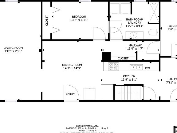 - Total interior livable area: 1,117 sqft