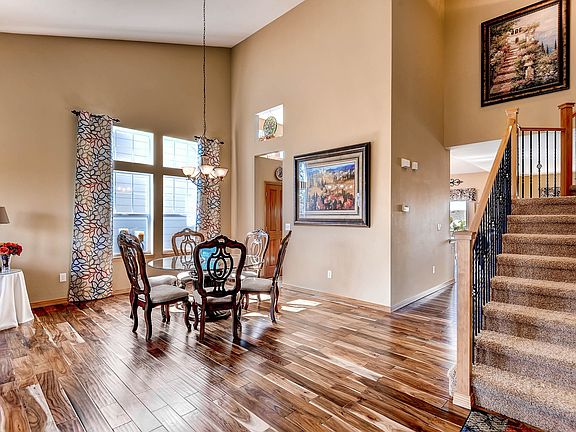 **Stunning Mtn Views** Beautifully maintained 2-story home located on a cul-de-sac in the wonderful community of Tallyn's Reach w/4 beds, 2.5 baths, main floor study. Inviting foyer that enters into an open living area with vaulted ceilings, beautiful new Acacia hardwood floors that carry through the main level. Large eat-in-kitchen w/lots of cabinet space, SS appliances, high ceilings. Large family room w/built-ins, fireplace, surround sound, and Mtn views. Enjoy the Mtn views from the Trex deck off the eat-in kitchen. Main level also includes a large study, laundry, & 3/4 bath. Upper level includes a large master retreat with french doors & Mtn views, surround sound, 5-piece master bath, large walk-in closet. 3 additional bedrooms & full bathroom w/ double vanity on the upper level as well. Dual-zoned HVAC. Walk-out basement w/10' ceilings & over 1500 sq/ft ready for your finishing. Great location with easy access to DIA, E-470, & shopping. Don't let this one get away!