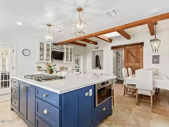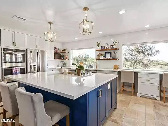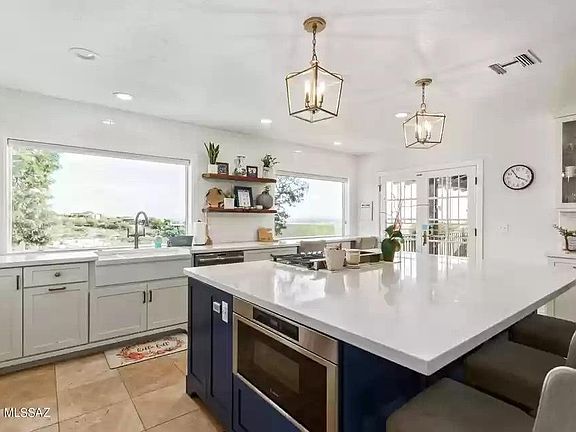 Modern Farmhouse furnishings combine with Southwest charm to create an unbelievable rental home experience. This newly remodeled, spacious, furnished, three bedroom home is located in a highly desirable 24 hour man gated community in the Catalina Foothills. The home has panoramic views of the mountains and city. It is within a couple miles to La Encantada for shopping and amazing restaurants, hiking, and 44 nearby golf options. Whether you're retired, working remote, or vacationing, do it in luxury while enjoying all the amenities this beautiful estate has to offer! This home offers 3 bedrooms and 2 1/2 baths with pool! An enormous kitchen and very spacious living room with gas fireplace on the main floor carry out to the backyard with a covered wrap around back porch, plenty of seating, private pool, BBQ, enclosed springfree trampoline, and a small (artificial) grassy area with games and sports equipment for all ages. Bright, open main floor with spacious living room, dining room, and kitchen areas that flow into the covered wrap around back porch. Enjoy meals around the enormous white quartz island taking in the city views, breakfast nook with built-in custom bench seating, or on the large table on the covered back patio. Double ovens, gas stove, and dishwasher all 2019 GE profile. Just up a few steps from the main floor you will find the spacious master bedroom with it's own private sitting area (with TV), Treadmill and free weights, as well as a designated desk space for working remotely. On the other side of the main floor are two other large bedrooms with a separate outdoor space and private back porch facing the Catalina mountains. Down the steps in the back yard is an enclosed, springfree trampoline. For entertainment, the home is set up with Xfinity cable television, smart TVs, and high speed internet so you can use your streaming service of choice. Weekly pool and landscaping service. Utilities included! Owner pays cable, Wi-Fi, gas, electric, water, trash/recycling, pool maintenance, and landscaping. *Renter would be responsible for any additional cost of a significant spike in utility cost out of the average "normal" range for the time of year.