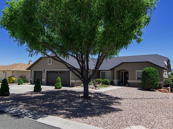 Amazing 4 bed 2 bath home with RV Parking area. 4th bedroom has double doors and is currently being used as an office/den. This immaculate split floor plan home has raised and vaulted ceilings, newer paint, new roof 2016, granite counters, french doors, gas fireplace with hearth, lots of lighting and several upgrades. BIG kitchen with separate eating area. Spacious 3 car garage with utility sink. Security system too. You'll love the curb appeal and well-manicured established landscaping. This great Home has exterior accent stone and a spectacular rear deck and yard to capture the nice views of Mingus Mountain ! Side gates for RV access.Surf board table on rear deck does not convey nor the security cameras.