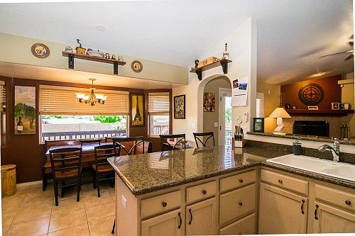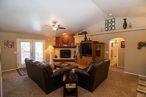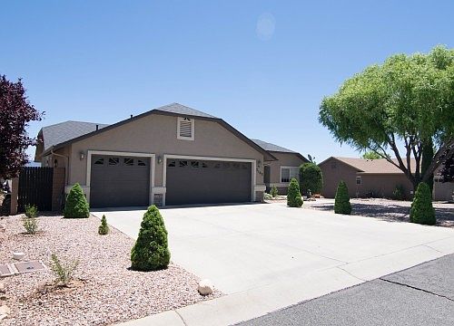 Amazing 4 bed 2 bath home with RV parking area. 4th bedroom has double doors and is currently being used as an office/den. This immaculate split floor plan home has raised and vaulted ceilings, newer paint, new roof 2016, granite counters, french doors, gas fireplace with hearth, lots of lighting and several upgrades. BIG kitchen with separate eating area. Spacious 3 car garage with utility sink. Security system too. You'll love the curb appeal and well-manicured established landscaping. This great home has exterior accent stone and a spectacular rear deck and yard to capture the nice views of Mingus Mountain . Side gates for RV access.