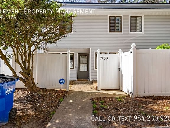 Welcome to 7163 Sandy Creek Drive, a lovely 3-bedroom, 2.5-bathroom townhome nestled in the heart of North Raleigh. This two-story residence offers 1,330 square feet of thoughtfully designed living space. Step inside to discover a quaint kitchen featuring shaker cabinets, granite countertops, a glass tile backsplash, and stainless steel appliances. The main living areas boast wide plank luxury vinyl plank flooring, providing both durability and style, while plush carpeting adds comfort to the bedrooms. Fresh, designer-inspired paint throughout the home creates a warm and inviting atmosphere. The living room's cozy fireplace serves as a focal point, perfect for relaxing evenings. Sliding glass doors lead to a private patio, offering an ideal space for outdoor entertaining or quiet reflection. Experience the perfect blend of comfort, style, and location your new home awaits. This rental is managed by Element Property Management. All Element Property Management residents are enrolled in the Resident Benefits Package (RBP) for $48.00/month which includes liability insurance, credit building to help boost the resident's credit score with timely rent payments, move-in concierge service making utility connection and home service setup a breeze during your move-in, our best-in-class resident rewards program, on-demand pest control, and much more! More details upon application. $65 Application Fee per Adult. 650 Credit Score Preferred. Preferred Combined Income: 3X Net or 4X Gross Monthly Rental Amount. Felony convictions within the last 10 years may result in denial. Past or present registration as a sex offender may result in denial. **Please verify credentials before applying. Application fees are NOT refundable. In addition to this application, you will also be required to provide a valid copy of photo ID, a landlord reference and proof of income. Pets are negotiable. Pet fees are $250 up front for one pet and $50 for each additional pet, $20 per month for one pet and $10 for each additional pet.