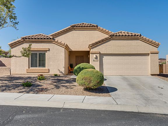 Unobstructed views of Sombrero Peak! This 4 bed, 2 bath with a den or formal dining room, backs up to common area with no rear neighbors. Tile throughout which means no carpet to keep clean. Several updates and smart features have been installed within the past year which includes, new interior paint, wood plank ceramic tile installed in all bedrooms & dining room/den and new ceiling fans. An Ecobee Smart Thermostat, Ring Doorbell, Yale August Smart Lock and Lutron dimmers for recessed lighting have all been installed for convenience. The bathrooms have been updated with new fixtures & dual flush toilets. The kitchen is open to the great room with upgraded cabinets, granite countertops, island & a new reverse osmosis system with faucet at the kitchen sink (connected to the refrigerator).
