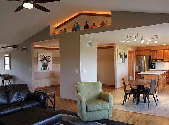 This home welcomes you with amazing pond and golf course views upon entry! Custom ranch with full walk out lower level sits perfectly on the 9th hole of Newburg Village Golf Club. Upgraded Kitchen, baths, fireplace mantle, and flooring!! New roof, siding and gutters in 2014. Huge master suite features: breathtaking views, upgraded carpet, Jacuzzi tub, separate shower, double sinks and a MASSIVE!! walk in closet! Custom lighting inside and out. Walk out lower level with patio features: Two offices bonus rooms, family room, rec room, kitchen and full bath! An amazing 3700+ square feet if finished space! Words and pictures do not do this home justice! MUST SEE!Close to I-90 and shopping.