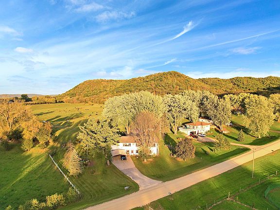 Situated at the base of the bluffs near Miller Creek is this updated 2-3 bed, 2 bath home. Experience country living while being just minutes from downtown Lake City. This half acre property has a lot to offer; beautiful views, garden beds, apple trees, and much more! Step inside the 2600+ SQFT home and you will quickly appreciate the open and inviting floor plan, the oak hardwood floors, and the beautiful 4 season sunroom featuring a beautiful tongue & groove ceiling and a gas stove for comfort. The kitchen has been tastefully updated with new countertops, stainless appliances, and a beautiful butcher block island. Easily convert the second bedroom back into two separate rooms to achieve three bedrooms on the main level. The basement features a built-in wet bar, and a large common space that could serve many uses. Check this one out today!