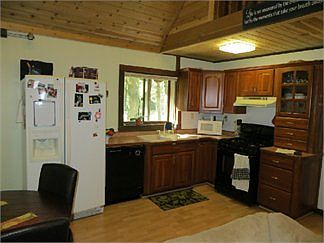 Beautiful, remodeled Chalet-Style Home with complete privacy on 1.55 acres of wooded privacy just minutes from town!! Updates include trendy interior wall colors, newer laminate, MB Hardwood floors, cedar ceiling, tile, carpeting (11), furnace (11'), water heater (09'), cupboards, counter-tops, fixtures & appliances. You'll love how charming this home is with an open-concept floor plan, cathedral ceilings, main-floor laundry, 2 nice size bedrooms & a full bath, large deck off the living room & small master suite deck. There's a 2 1/2 car detached garage, 3 BR septic, all with complete privacy! Lovely home at an even more lovely price! Come and see it today!