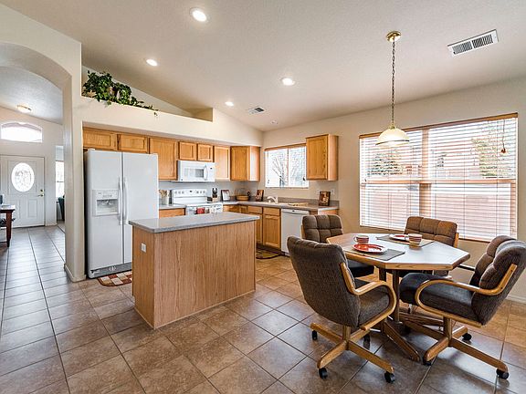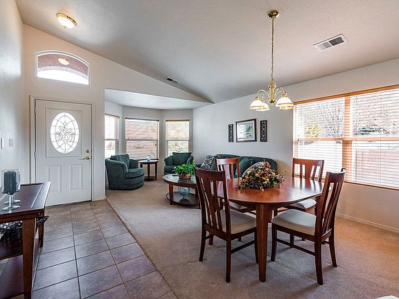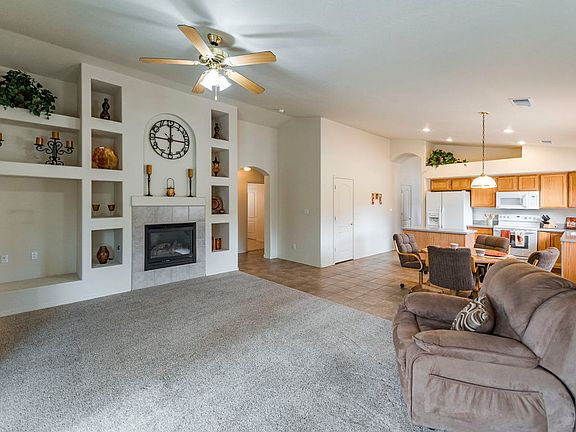 Lovingly cared for single story home on a corner lot in Eagle Springs Subdivision. Living area with raised ceilings with lots of light, opens to the kitchen with island, breakfast nook, pantry, solid surface Corian counters. 2 living areas, 2 dining areas, gas log fireplace with built ins. Refrigerated air and ceiling fans. Easy care landscaping with turf, putting green, trees and bushes with bubbler drip system, covered/extended patio and garden box with morning sun.