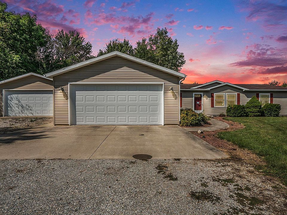 Welcome to this inviting ranch-style manufactured home, perfectly situated on a generous 1.54-acre lot. Offering a comfortable and open concept layout, this home features three bedrooms and two bathrooms, designed for easy living and functionality. The primary bedroom is a tranquil retreat, complete with a spacious bathroom featuring a relaxing garden tub. The living and dining areas boast vaulted ceilings, creating an airy and open atmosphere. The two additional bedrooms are well-sized and come with ample closet space, ensuring plenty of storage. The kitchen is both spacious and efficient, making meal preparation a breeze. Step outside to enjoy a private patio off the side entrance—ideal for outdoor relaxation. In addition to the main living space, the property includes a detached garage perfect for storing your toys, using as a workshop (if power is added), or general storage. There's also an oversized attached garage, offering additional space for car parking and personal items. This estate sale is a fantastic opportunity for those seeking a home with potential. The property is being sold as-is, and agents are welcome to bring their buyers. We look forward to working with you to find the perfect new owner for this lovely home.