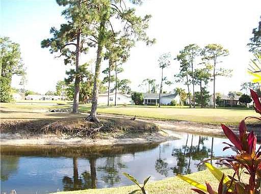 NO RESTRICTIONS. VERY SPACIOUS 2 bedroom 2 bathroom house with pond & golf views. NEWER WOOD floors installed. RECENTLY PAINTED. Split floorplan. Enclosed Florida Room for extra interior space. Minutes to nearby shopping, major roads, schools.Living Room is large enough that you can enclose area to make 3rd room. Tiled Interior Florida Room. Patio in back with Pond and Golf green views. Kitchen has black appliances with space for dinette table. Kitchen views to back of house. Dining Room opens to Living Room all with Views. One Car Attached Garage with space for storage. Interior Washer and Dryer Laundry Room with additional storage space. Plenty of Closets throughout house. MASTER BEDROOM Has WATER and GREEN VIEWS. Step in Shower with WALK-in Closet.