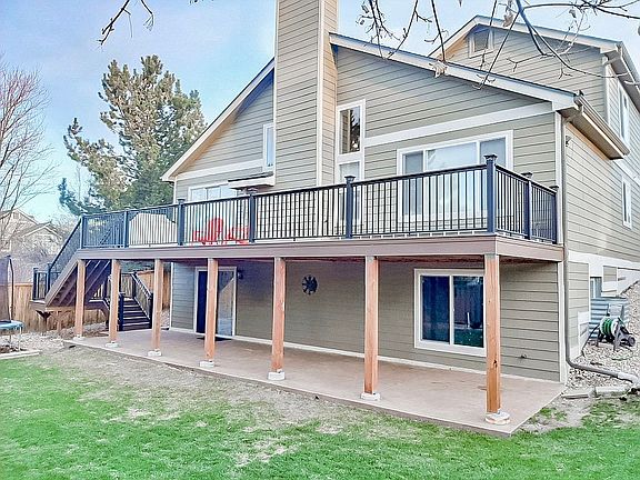 Come see this updated and open 4 beds 4 baths home located in a cul-de-sac in the highly desirable Highlands Ranch Eastridge neighborhood. This home features updated kitchen with quartz counter tops and stainless steel appliances including a double oven. Lots of light, vaulted ceilings in entry and family room, hardwood floors throughout the main floor. Walk-out basement and beautifully maintained large backyard with a play area and New Trex deck for your summer gatherings. The spacious family room has a gas fireplace & built-ins. Large main floor master suite with a 5 piece bath with walk-in closet. Upstairs flex space/den can be converted into 5th bedroom. The house also features New windows (2018), new interior and exterior lighting fixtures, Newer carpet, new exterior paint on the back side of the house, roof and gutters (2014), furnace (2015), humidifier, AC and water heater (2016) and new sprinkler manifold installed in 2017. Easy Access to I-25 & C470!