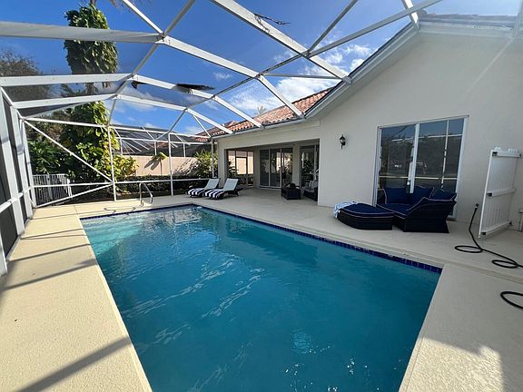 Lovely pool home, freshly painted, large screened enclosure. Beautiful lake view.Oakmont model. The heart of this unique residential community is its waterfront Town Center where you can grab lunch or dinner at the on-site "Centanni" Italian restaurant; enjoy the tennis and pickle ball experience on the eight Har-tru lighted courts with on-site tennis instructor and active tennis program. Take a swim in one of the three heated pools, fish from one of the many picturesque bridges; stop by the library, play ping pong or pool. Also located in the Town Center is the full service Illustrated Properties real estate office, beauty salon, mail facility and children's playground. Enjoy 12 miles of scenic pedestrian pathways, take a bike ride or enjoy a vigorous work out in the renovated fitness center or play bocce - all for the exclusive use of River Walk residents! Yoga, mahjong, bridge, aqua aerobics, foreign language classes, crafts and more are some of the other fun activities offered! River Walk offers luxury resort-style living, without extravagant ''country club'' fees! Conveniently located near the turnpike, Palm Beach International Airport, the Outlet Malls, Kravis Center, Downtown, and Palm Beach Island.