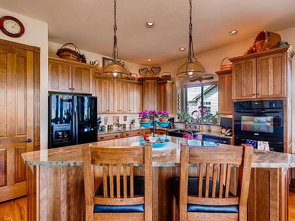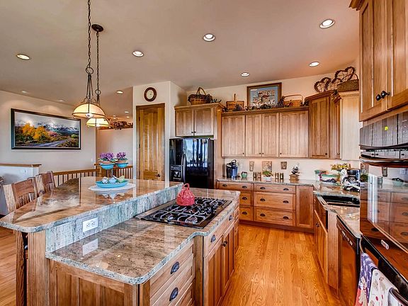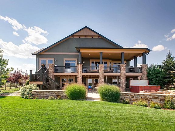Step out on the covered deck to enjoy spectacular sunrises and endless canyon views. This well-constructed Craftsman style Ranch home, located on a rare one-half acre canyon rim lot, boasts the highly desirable main floor Master Suite and two additional bedrooms accompanied by the Gourmet kitchen/Great Room, Formal Dining and Study. The Garden level showcases two large Guest en Suites, a Game Room with natural stone fireplace and Wet-bar adjoining the spacious Theater Room. The Exterior spaces are elaborately landscaped with a Water feature, patterned concrete Patio, Hot Tub and Fire Pit. Come experience the views, serenity and quality!