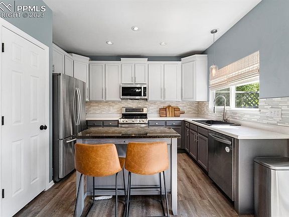 Beautifully Updated 2 Story home in Springs Ranch! This charming well-maintained home has custom touches and finishes throughout! You will love the vaulted ceiling, updated flooring, lighting and hardware! A cozy family room with gas fireplace connects to a large kitchen with tall cabinets, stainless steel appliances with double oven, pantry and plenty of space for a dining table! The upstairs features a spacious primary bedroom with ensuite bath, walk-in closet and gorgeous mountain views! Upper level also offers a 2nd bedroom, full bathroom and convenient laundry area and an open loft (could easily converted into a 3rd bedroom if desired, adds versatility to the floor plan, allowing you to customize the space to your needs)! Walkout from kitchen to deck with a fully fenced backyard, perfect for BBQ, relaxing or entertaining! There is plenty of storage in the 2 car garage! Central AC for those hot summer days! New Exterior Paint! New Roof will be installed prior to closing! Great location near schools, parks, endless shopping and dining along the Powers Corridor! Conveniently located to Peterson AFB/Schriever. Must see! WELCOME HOME!