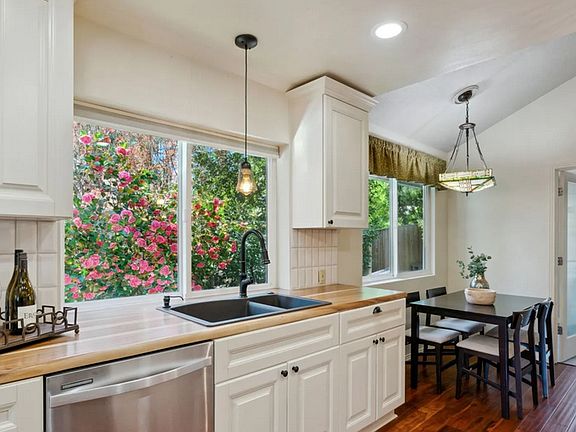 This recently remodeled, one-level home has been transformed to emphasize comfort and ease throughout. The open floor plan and vaulted ceilings brighten the space and create a perfect environment for joyful entertaining. The sophisticated living room features a wall of large windows and is warmed by a beautiful new gas fireplace surrounded by tile. The showpiece kitchen boasts all new cabinets with built-in pull-out shelves, live edge Acacia wood countertops, new stainless-steel appliances, a Blanco sink, and modern faucets. At the end of the day, unwind in the cozy family room, where a wood stove, built-in cabinets, and a wine fridge await. The primary bedroom has been completely reimagined within a 300-square-foot addition, offering a luxurious retreat. Its en suite bathroom includes heated floors, new cabinets, a linen closet, double sinks, and a tile walk-in shower. The guest bathroom is equally impressive, featuring a Jacuzzi tub and stunning green tile. All three bedrooms have newer carpet, while the rest of the house showcases luxury engineered wood flooring. Large walk-in closets in the secondary bedrooms provide ample storage and can even double as charming secret play areas! Enjoy mornings listening to the birds in the enchanting fenced backyard, bursting with mature landscaping, spring blooms, lush raised beds, and a low-maintenance sprinkler system. Additional highlights include 400 square feet of attic storage, a high-efficiency mini split system with individual room units, a new electrical panel, updated plumbing throughout, and more. Conveniently located with easy access to all parts of Portland via I-5 and 99W, with Fred Meyer just up the street