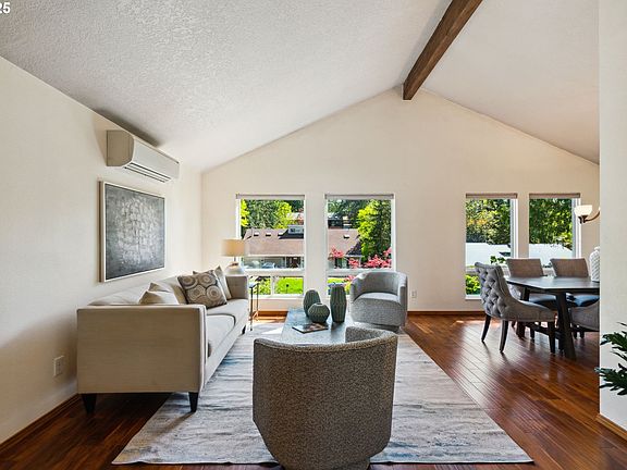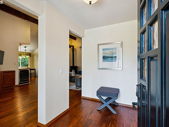 A recent remodel completely transformed this one-level home to emphasize comfort and ease throughout. The open floor plan and vaulted ceilings brighten the space and encourage joyful entertaining. Sophisticated living room with a wall of big windows is warmed by a pretty new gas fireplace surrounded by tile. The showpiece kitchen features all new cabinets with built-in pull-out shelves, live edge Acacia wood countertops, new stainless-steel appliances, Blanco sink, and faucets. Head to the cushy family room at the end of the day where the wood stove, built-in cabinets, and wine fridge await. Sleek primary bedroom completely reimagined in the 300 square foot addition. Its en suite bathroom includes heated floors, new cabinets, linen closet, double sinks, and tile walk-in shower. The guest bathroom is equally impressive with jacuzzi tub and gorgeous green tile. Newer carpet in all three bedrooms, luxury engineered wood flooring in the rest of the house. Large walk-in closets in the secondary bedrooms add ample storage (and can double as charming secret play areas!). Listen to the birds in the morning in the enchanting fenced backyard with mature landscaping bursting with spring blooms, lush raised beds, and low-maintenance sprinkler system. Additional highlights include: 400 square feet of storage in the attic, high-efficiency mini split system with individual room units, new electrical panel, updated plumbing in the entire house, and more! Convenient access to any area of Portland via I-5 and 99W, with Fred Meyer just up the street!