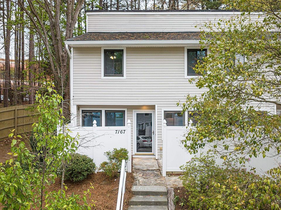 LOCATION, LOCATION, Minutes to North Hills!! Cute. Charming. Unique. And nestled in the heart of North Raleigh. Recently dolled up, with fresh paint, new carpet, new fixtures & DW. The first floor offers a pleasant foyer, leading to adorable kitchen with lots of light, and large living area with fireplace, perfect for relaxing evenings. The adjacent dining room is ideal for hosting gatherings of any kind or could be a great home office. The second floor offers a spacious primary suite with ensuite bathroom & WIC and generously sized bedrooms, great for your guests. The outdoor living area is perfect for enjoying the beautiful North Carolina weather with THREE porches and fenced in patio. Located in a highly desirable neighborhood, this home would make a great investment opportunity. Steps from shopping, dining, and entertainment. Don't miss out!