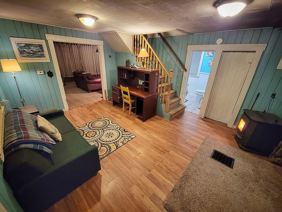 We are selling our 2 story home. The house is right on Route 105 in the 35mph zone of the town of East Charleston (close to Lake Willoughby, Newport, I-91, and Burke Mountain). It is an older home that needs some TLC, but ready to move into and live in NOW (can come fully furnished). An attached 1-car garage with 2nd story and fenced in backyard make this the perfect rustic country getaway. Three heating sources available in the home (a new forced hot air oil furnace, newer pellet stove, and propane heaters) will keep you warm even in the coldest of winters. The master bathroom features a jet tub. The water comes from a tested, delicious, gravity-fed spring with TONS of pressure that has kept out family hydrated for 4 generarions. This is an invaluable addition when so many water rights are being purchsed by outside interests (plus, no electricty required). The septic and leach field are flawless. There are blueberry bushes, blackberry bushes, strawberries, and apple trees on the property... along with a flattened area perfect for an additional tiny house tucked slightly into the woods, further off the road. Additionally, a old garden plot (roughly 40'x20') exists up the hill behind the house, and an insulated grow room was built just off of the mud room from the side entrance to the home. There's a brick patio out back for BBQ, covered porch at the front entrance, and mud room with chest freezer at the side entrance. The roof needs work soon, but is fine for now. The new vinyl siding is not finished yet (still some exposed cedar siding). It has an unfinished dirt basement with stone foundation. More specific details, better photos, and videos coming soon. Can be sold furnished, or empty. We are currently working on repainting the interior of the house. Currently available for tour anytime... but, will be listing it for rent quite soon (ensuring a reasonable clause is placed in the rental agreement in the event it sells, and needs to be viewed).
