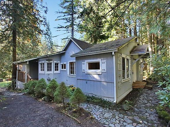 3 character filled dwellings on an acre of land at the base of Mt. Hood. Great opportunity to fix up cabins for AirBnb income or to make your very own family cabin community for retreats. Two 1 bed 1 bath cabins & detached garage w/ a 2 bed 1 1/2 bath apartment. Main house has a fireplace, vaulted ceilings & a large back deck. Beautiful private property w/outdoor stone fireplace, stone pathways, greenhouse frame & creek running through