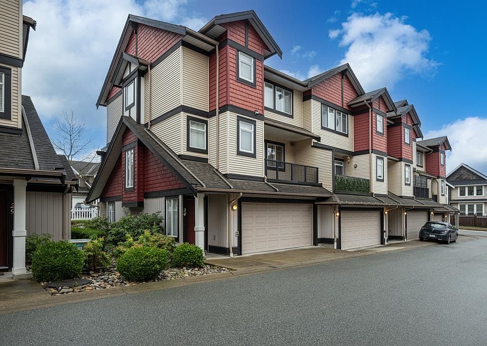Here it is. Welcome to Ovation in Provinceton neighbourhood. With over 1,700 sqft, this 3 bedroom 3 bathroom spacious END UNIT offers an open concept main floor with a good sized kithcen, s/s appliances, pantry, large island, granite countertops, 9 ft ceilings and laminate flooring. Upstairs features 3 good sized bedrooms with the primary having a 3 piece ensuite and walk-in closet. There are 2 decks, air conditioning, and a built-in vacuum. Double side by side garage with extra storage. Finished recroom downstairs with separate entry. Easy access to parks, schools, and the future Skytrain extension. Fenced yard. Great location in the complex.
