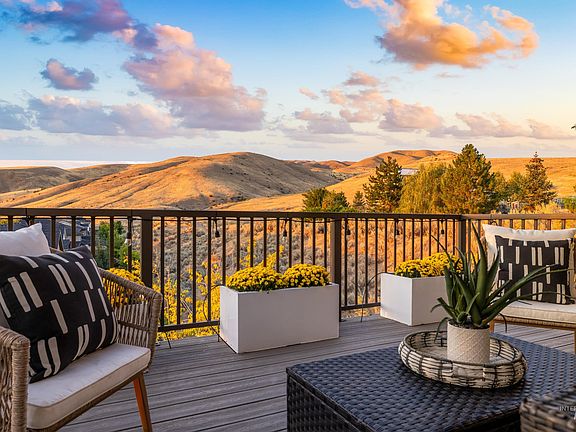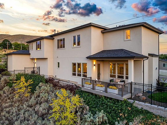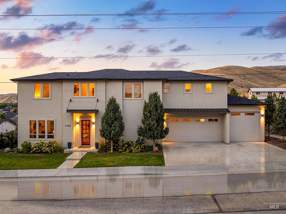 Breathtaking foothill views set the stage for this modern masterpiece, ideally positioned in one of NE Boise’s most sought-after neighborhoods just minutes from the Boise River, Greenbelt, Ridge to Rivers trails, Lucky Peak Reservoir, and Bown Crossing. Walls of windows bathe the main level in natural light, framing picture-perfect scenery at every turn. Rich engineered hardwoods flow through the expansive great room into a chef’s kitchen outfitted with Thermador and Bosch appliances, quartz countertops, a six-burner gas range, and ceiling-height cabinetry. Relax in the master retreat where mornings begin with foothill views and evenings unwind in a spa-like ensuite featuring a soaker tub, walk-in shower, and dual vanities. An upstairs flex space enhances the home’s versatility, while a perfectly sized balcony and fully fenced yard provide an inviting backdrop for both entertaining and everyday living. A rare 3 car garage with a 34' RV bay offers abundant storage and a home base for all your adventures.