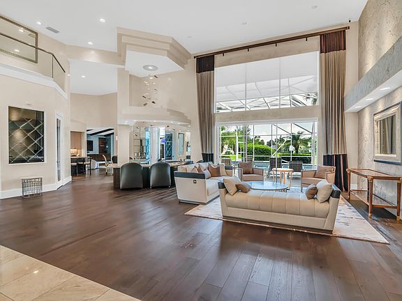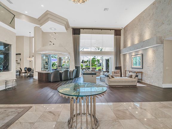 Magnificence exudes from this beautifully designed 6,850 sq ft residence overlooking the lake in the coveted subdivision of Encantada in Boca Pointe Country Club. Notable features include: Extra-high ceilings, expansive lap pool and hot tub with screened enclosure, direct lake views, large ground floor master suite, movie theater with projection screen and theater seating, game room, elegantly renovated kitchen, wet bar, wine room, ground floor study, floor to ceiling windows, spacious living areas, built-in closet rooms, fireplace, and more. Potential to create additional bedrooms. Boca Pointe is a luxury country club in Boca Raton offering optional golf, tennis and social memberships. Move right in or put your finishing touches to this beautiful home.