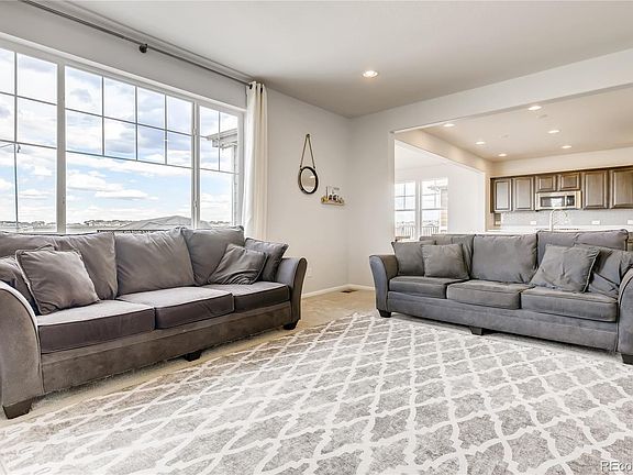Welcome Home to Serenity Ridge! This gorgeous 3 bed & 3 bath property boasts over 2,400 finished square feet of living space PLUS a full unfinished walkout basement. Upstairs there are 3 bedroom plus a loft that could be finished for a 4th bedroom upstairs. The expansive eat-in kitchen offers a large quartz counter top, sophisticated backslash, 42' cabinetry and modern appliances with gas range plus double oven. Enjoy your morning coffee while watching the sun rise over Aurora Reservoir from the open breakfast area right off the kitchen! The backyard provides ample room for entertaining, gardening, grilling and plenty of space for pets. The patio and deck provide wonderful spaces to soak up the Colorado sun or enjoy the outdoors in the shade!