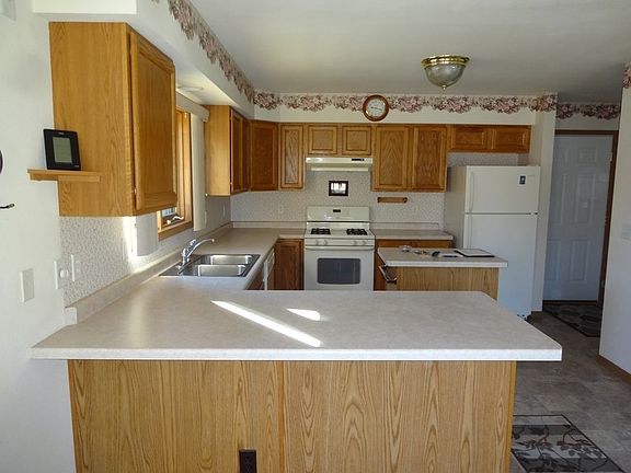 12 Year old ranch home with walk out lower level and oversized three car attached garage. Private rural setting on 2.84 acres just minutes north east of town. Neat and clean one owner property. Living room with vaulted ceiling and bow window. Kitchen and dining room have patio door leading to deck with beautiful view overlooking the private back yard. Master bedroom has double closets and direct access to bathroom with double sinks.
