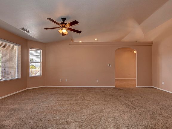 Rent this 3 bedroom, 2 bath, 2 car garage home in Viewpoint. Enter off the large covered front porch into the tiled entry and further into the carpeted living room. Pass thru into the kitchen and dining area. The kitchen features tile floors, a pot rack, stainless steel appliances and a large pantry. The dining area off the kitchen connects to the Arizona room and 2 car attached garage. Off the living room is 2 large bedrooms, a full bathroom and laundry closet with washer and dryer hookups. At the end of the hall is a large master suite with en-suite full bath with dual vanity sink, a walk in closet and access to the AZ room. The exterior features a full landscaped yard and block privacy fenced backyard.