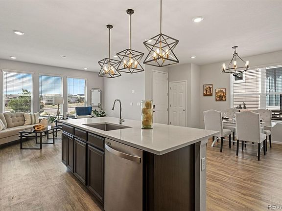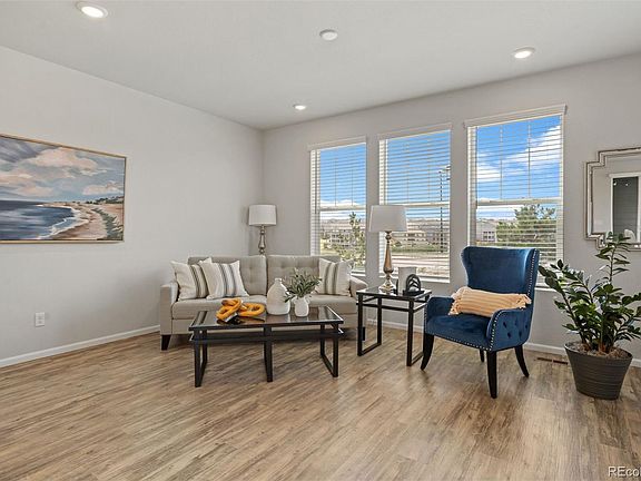 A prime location and modern design make this the ideal home base for Colorado adventures, easy access to work, life, or school, and a peaceful retreat from the city. The main level features an open floor plan, seamlessly connecting the living, dining, and kitchen areas. The kitchen is designed for both function and style with sleek quartz countertops, a gas range with a griddle, and is anchored by a large, central island. Ideal for home chefs! Upstairs, you'll find two guest bedrooms, a full bath, and a spacious primary suite complete with a large walk-in closet and a luxurious bathroom. Contemporary farmhouse finishes, durable engineered vinyl plank flooring, abundant natural light, a versatile loft space, and an attached two-car garage add the finishing touches to this stylish home. Beyond the interior, a covered back deck and private yard beckons, creating a retreat for outdoor lounging and entertaining. With low-maintenance living in mind and easy lock-and-leave convenience, this home is perfect for those seeking a worry-free lifestyle, whether at home or away.