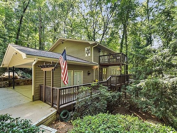 It's like living in the N. Georgia mountains without the commute! A comfortable home that yields to LIVE-WORK-PLAY. Main floor has an open flow from eat-in kitchen to dining area & great room where you can entertain or cozy up to the fireplace. There is a bedroom, full bath, laundry room & utility closet also. There are numerous doors to the deck to help you bring the outside in. The new staircase leads you upstairs to the Owners Suite with a spacious bathroom & customized closet. Enjoy evening beverage/morning coffee on the balcony deck. A third bedroom, generous closet & bathroom complete the upstairs. The lower level has ample space & light to work or play or do both! You'll enjoy gathering around the 2nd fireplace in this multi-purpose space. SEE LIST OF IMPROVEMENTS! New hardwoods, 2 HVAC's & furnace, newly stained deck, new hardwood stair and railing (all in 2020). In 2019, new carpet upstairs, new light fixtures, updated kitchen/bath hardware, new ceiling fans & blinds in each bedroom, freshly painted upstairs & down. New heat pump installed in 2015, termite protection since 2018. A well cared for home with minimal outdoor maintenance & fenced dog run.