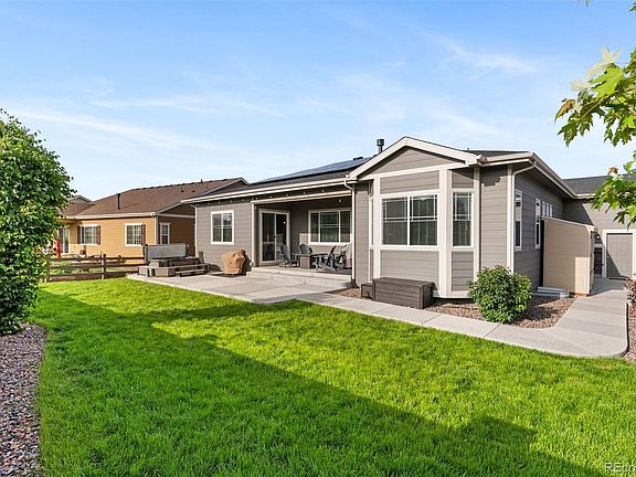 Your beautiful 5 bedroom, 4 bathroom 2017 ranch style home has so many fantastic features and amenities! The main level boasts premium engineered floors, large dining room and laundry room with sink, and a huge kitchen with stainless appliances, double convection ovens, gas stove, granite counters, and center island. The lower level includes a huge finished basement with a theater room (furniture, projector, and screen all included), large gym (can be included), and tons of storage. The bright, open backyard includes a covered sitting area with motorized sunshade, a newer, working hot tub, and a storage shed, all on oversized main and side patios, ready for entertainment. The 3 car garage has tons of built in shelving and space. This home is also pre-wired for security, speakers, and ethernet throughout. A fully paid for 10KW solar system will generate enough power to keep your electricity bill near zero all year!