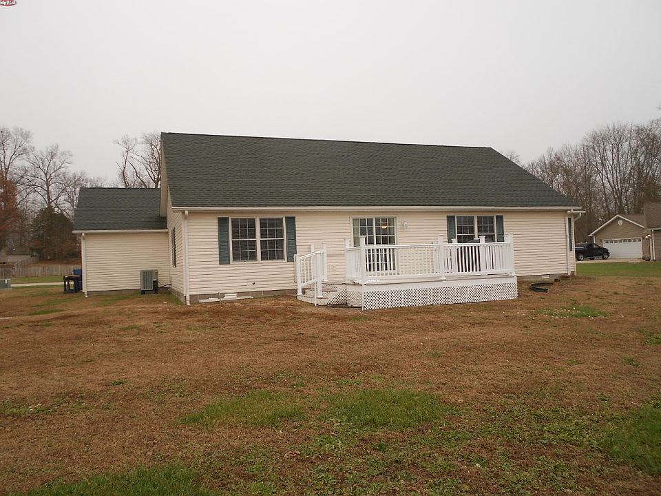 Gorgeous newer build home in Hunter's Pointe subdivision on cul-do-sac. From the minute you walk in the spacious home you will get the feeling of home. The open concept leads you from the living into the dining and kitchen. The home offers a split floor plan and vaulted ceilings and hardwood floors. The kitchen has cherry cabinets and stainless steel appliances, as well as a ceramic tile floor. The master bedroom suite is large with tray ceilings and walk in closet. The home offers an attached 3 car garage with plenty of storage. The outside back deck is a great spot to enjoy the almost 1/2 acre lot. The neighborhood is quiet and friendly. HOA fees are a one time fee when you move in of $250.00