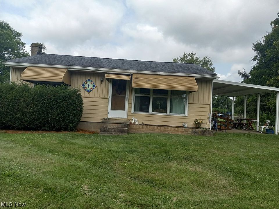 Country setting for this charming one floor home with two bedrooms, one bath, full basement and a carport on a one half acre level yard. All appliances stay. Hardwood floors under carpet. Has country water, AEP electric, ($50.00 avg. month), newer gas propane furnace (May 2023) and septic tank, central air, electric hot water tank is rented. Would make a wonderful first time home, rental or to downsize to. Large yard to build a garage. Cambridge City Schools. Close to Salt Fork State Park. Septic tank has been pumped.