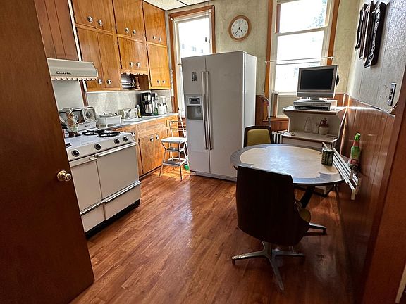 Nice two family home with 4 rooms on the first floor and 5 rooms on the second floor. Original wood floors, full walk out basement, and great size backyard. Both apartment need updating. This property has an underground oil tank that fuels a new hot water boiler with a tank-less system that provides domestic hot water.