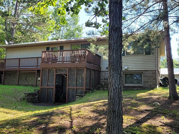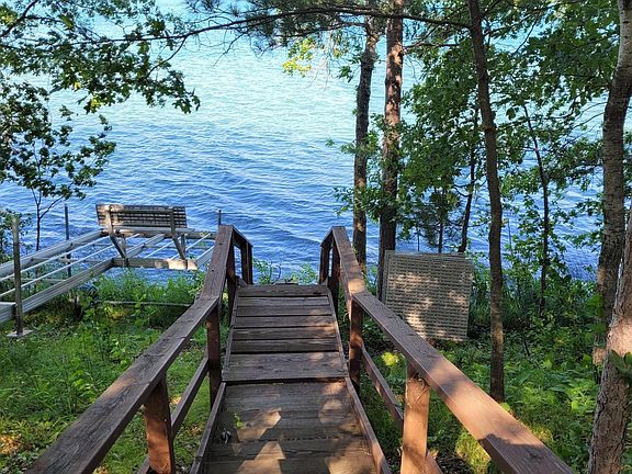 JOHNSON LAKE-THIS 6 BR / 3 BA WALK OUT FEATURES EXTENSIVE DECKS, 2 GARAGES (1 MAN CAVE), 100' OF SAND WATERFRONT, A ROLL-IN-DOCK AND NUMEROUS OTHER AMENITIES.