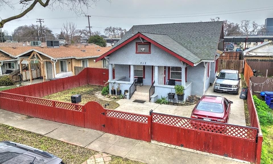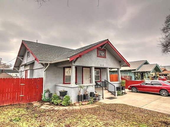 Come take a look at this adorable cottage-style bungalow reminiscent of Old Modesto''! From the moment you arrive, you'll fall in love with the inviting covered front porch featuring tile flooring. Step inside to a warm and cozy interior highlighted by stylish two-tone paint, built-in shelving, and classic coved ceilings. The spacious formal dining room offers ample room for gatherings and includes a convenient dining bar. The kitchen provides plenty of storage with built-in shelving, granite countertops, and stainless steel appliances. An indoor laundry room adds convenience with upper cabinetry for extra storage. The home features two updated bathrooms with tile flooring, newer shower stalls and newer vanities, along with two generously sized bedrooms. Step outside to enjoy a large covered patio perfect for any plant enthusiast plus a spacious backyard complete with an additional outbuilding featuring a sink and toilet. This charming home is truly a gem come see it today!