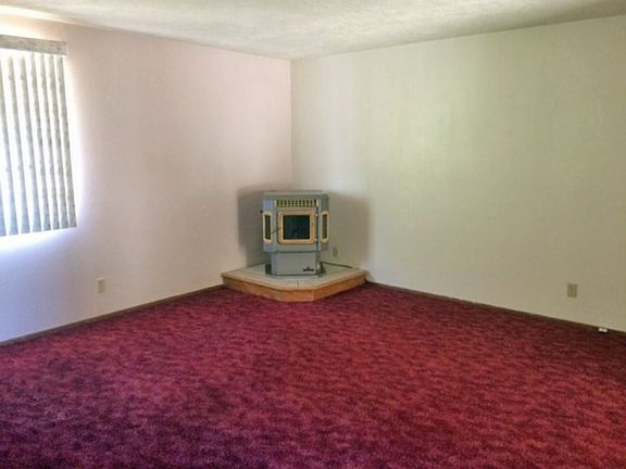 3 bedroom, 1.5 bath, pellet stove, 2-car garage, range, refrigerator, deck.