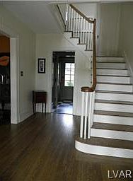 Charming Georgian colonial with 4 bedrooms and 2 full baths in convenient West End location, covered front porch with terra cotta floors and beveled glass French doors leading inside to entry foyer with beautiful turned staircase and hardwood floors, formal living room featuring built in bookcases surrounding fireplace and wide moldings, two sets of French doors from living room and dining room lead outside, black and white kitchen with subway tiles, stainless appliances, breakfast area and door to rear yard, master bedroom suite with walk in closet and dressing area plus tile bath, 2 additional bedrooms and full bath on 2nd level, 3rd floor consists of 4th bedroom or office plus walk in cedar closet and storage area, 1 car detached garage, laundry chute down to lower level from 2nd floor landing, full basement with outside exit