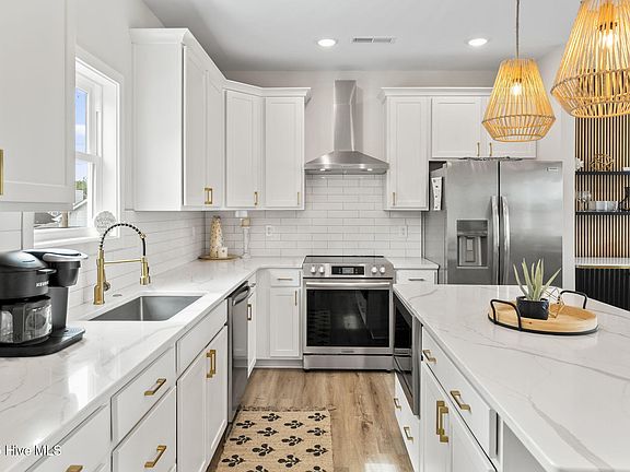 Coastal living at its finest! This stunning new build (2024), 3 bedroom, 3.5 bathroom home is designed for comfort and style, with every bedroom featuring its own walk-in closet and private bath. Two spacious suites are conveniently located on the first floor for easy living. Built with quality and durability in mind, the home boasts storm-grade windows, Hardie board siding, luxury vinyl plank flooring throughout, custom outdoor accent lighting, quartz countertops, a built-in camera system, and two separate HVAC systems servicing both floors. Relax on the spacious Trex front porch or in the large, fully fenced-in backyard with an irrigation system already in place. Best of all, there's no HOA and no restrictions on vacation rentals! Enjoy the ultimate lifestyle in the heart of Ocean Dr. North Myrtle Beach, perfectly located just a short walk to the beach or a quick golf cart ride to Main Street with shopping, dining, nightlife, family activities, grocery, and gas station all within minutes. Don't miss this opportunity to own a corner lot, low-maintenance, high-quality home in one of the most desirable coastal locations!