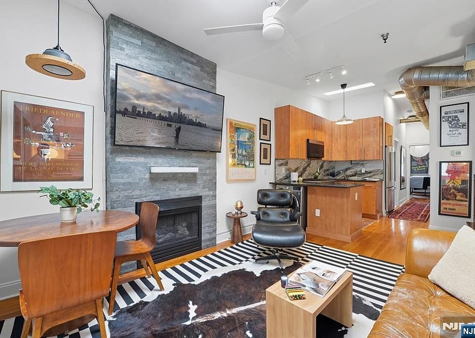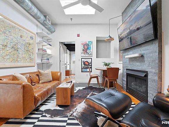 Discover this stunning 2-bedroom, 1-bath condo that perfectly blends modern elegance with everyday comfort. Featuring a chef-inspired kitchen with sleek countertops, designer backsplash, new premium appliances, and ample storage, ideal for cooking and entertaining. Soaring ceilings and skylights flood the space with natural light, while a cozy gas fireplace sets the perfect tone for fall evenings. The open layout includes in-unit washer/dryer and a private terrace, your go-to spot for morning coffee or sunset cocktails. Extra bonus - this unit comes with a private storage unit! Perfect for commuters, this home is just moments from the bus and PATH train, offering easy access to NYC. Located in the heart of Hoboken, steps from the Monroe Center, Columbus Park, shops, and restaurants, this condo truly has it all.