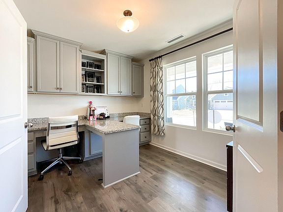As you enter, you'll see a beautiful open floor plan with LVP throughout the main level and a spacious office to your right. Continue through the home to an oversized L shaped kitchen with island and farmhouse sink. Leave your bags as you come in from the garage at the built in drop zone. Make your way up the stairs to an open loft and conveniently located laundry room. To your left, you'll find a sizable owner’s suite with a supersized walk in closet. This home holds the largest lot in the community where you can enjoy the outdoors. As this is a model home, the 2 car garage will be added prior to closing.