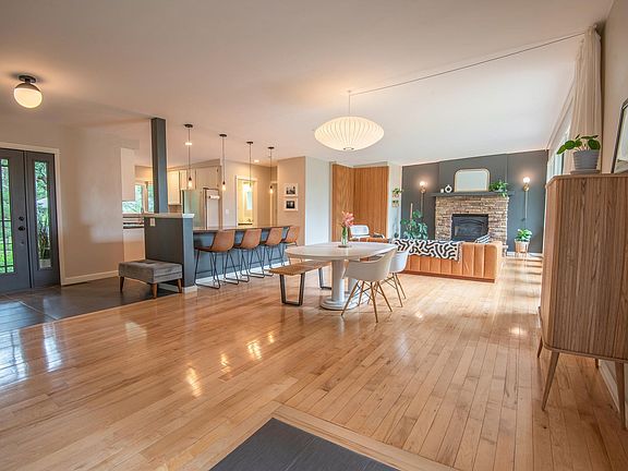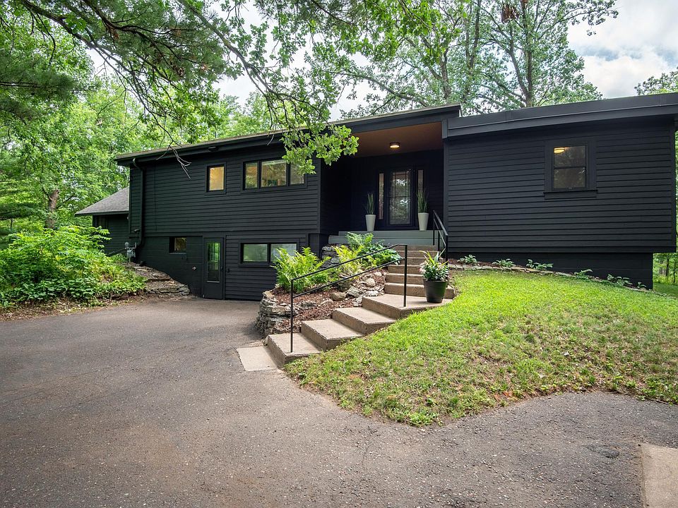 One of a kind property surrounded by gorgeous trees and natural wildlife; quiet neighborhood just minutes from White Bear Lake & quick access to St. Paul/MPLS. This home is the perfect blend of mid-century modern style and comfortable living, with large windows, plenty of space to work from home and relax after hours on the patio. The kitchen features stainless steel appliances, granite counters, and a huge bar-top island. Hardwood floors cover the main level with its open "great room" feeling and cozy fireplace (perfect for entertaining), along with an office space and full bathroom. The west wing includes 2 bedrooms and a beautiful 3/4 bathroom, while the east wing features a den, 2 more bedrooms, and another updated 3/4 bathroom. The huge walkout basement has a family room area along with a rec. room space, and a nice workshop or storage area with direct access outside near the garage. Mahtomedi school district! You have to view this one to appreciate it--Come see today!