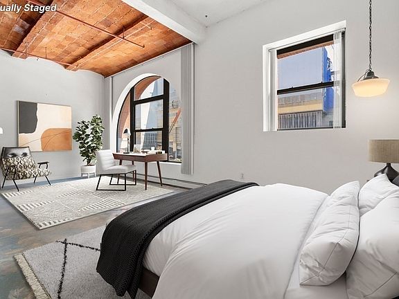 This unique live/work loft in the Leather District is perfect for the urban professional. Located directly across from South Station, this sun-filled front corner unit has dramatic arched window with impressive city views. The open plan features polished concrete floors, track lighting, and 12-foot high terracotta ceilings. The kitchen has stone counters, gas cooking, custom Sub-Zero and oversized island. The spa bath has a jetted tub and large closet. There is also a washer/dryer in unit. Elevator access and individual central AC. The condo fee includes heat and hot water. This convenient location is adjacent to the Rose Kennedy Greenway and short distance to the Financial District, Chinatown, and the Seaport District's museums and many restaurants.