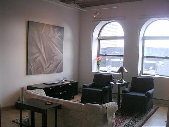 True Metropolitan LOFT home with a wide open floor plan, located in the former Fur Merchant's Cold Storage. Completely renovated, offering contemporary finishes and a pragmatic design. Impressive bath with an immense custom tile walk-in shower.Gorgeous oak hardwood floors & custom track lighting throughout. Foyer library features a custom built book case & storage. Architecturally stunning arched windows offering superb natural light. Dramatic12' arched Terracotta Ceilings.Heat,HW,Gas, Incl!