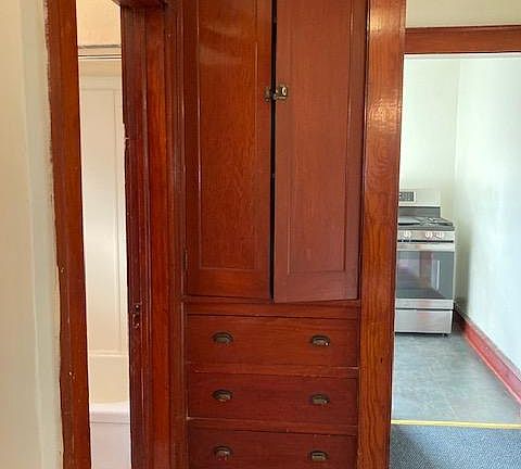 Large, light-filled 2nd floor, two bedroom apt, new windows, newly remodeled bathroom, built-in linen closet, new kitchen counter, sink and refrigerator, stainless steel stove with griddle, new carpet and flooring throughout. Abundant storage including full walkable attic. Laundry hook up in basement. Front porch, off street parking, and access to yard. Located on Wyoming Avenue, walking distance to stores. No Pets, No Smoking. Tenant pays all utilities including electric, water, gas, plus trash. Monthly rent is $800. Security deposit in the amount of $800 is due when the one-year lease is signed. First and Last Month rent, totally $1,600 is due when keys are provided for move-in. Comprehensive criminal, credit and reference checks will be performed.