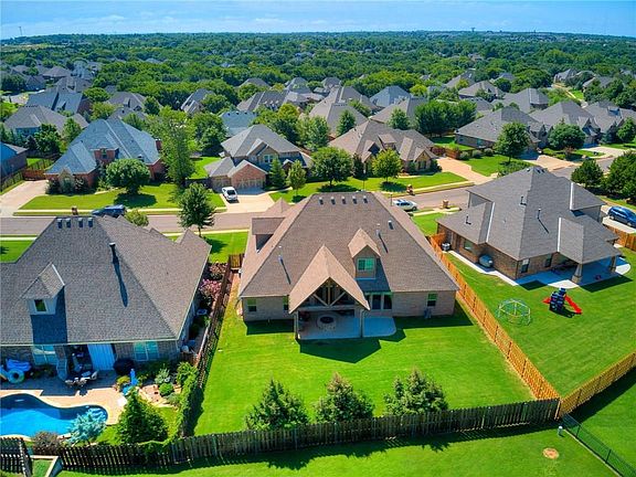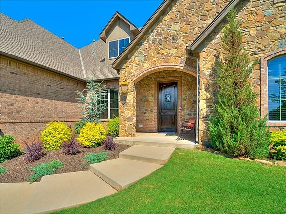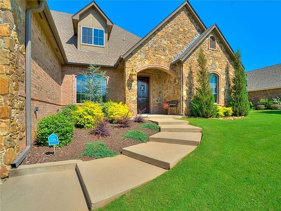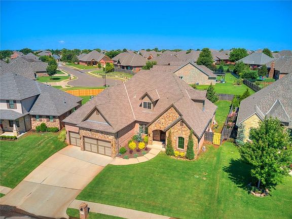 So much to love about this Belmont Farms beauty! Residents of this wonderful community enjoy walking trails, ponds, a pool, and playground, all within the Edmond School district. As you walk in the door, you'll find a wonderful open floor plan, with a dedicated study and powder bath. The kitchen features granite counters, Bosch appliances, and a large island with plenty of room for entertaining. Beautiful stone fire place in the living room and wonderful built-ins with plenty of storage. On the first floor you'll find the master bedroom, along with a second bedroom, and a theater room ready for your family movie nights. Upstairs are two more bedrooms with a bathroom, as well as a large bonus room. Step outside to the amazing covered patio, complete with a stone fire pit for those cooler nights. Other features include 3-car garage, above ground storm shelter, projector and screen in theater room, walk-in pantry.