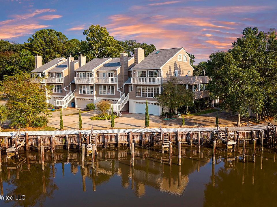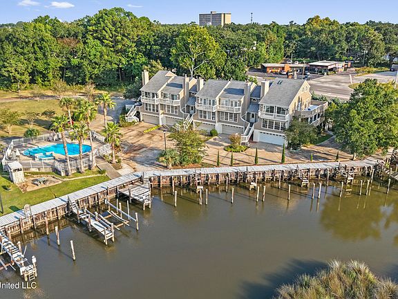 Waterfront townhome on deep water with a large boat slip. Just a 5 minute cruise to the Gulf! Vaulted ceilings, two fireplaces, 3 bedrooms, 3 1/2 baths, large kitchen, wet bar, and dining room. Great living space with fireplace- The best place to watch the beautiful sunsets over the Bayou! Double garage with storage. This unit has all the features you could ever ask for. Enjoy waterfront living and all the entertainment Ocean Springs has to offer. Three minute golf cart ride to downtown Ocean Springs!