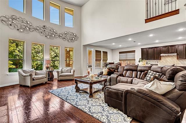 Come see this breathtaking home with soaring ceilings & an abundance of natural light. The Massive family room has gleaming hardwood floors & an open concept to the gourmet cooking center. Oversized Island, Stainless steel appliances, granite counters, vast cabinet space, & Huge walk in pantry add to the ambiance. The gracious 1st floor master suite has a separate Garden tub for soaking & a large walk in closet. The backyard is a peaceful retreat with trees & creek that runs behind with plenty of privacy. This energy efficient home is only a short distance to a Park, Hiking & Biking Trails, Dog Park and much more. Live in Luxury in an award winning school district. Schedule a tour today!