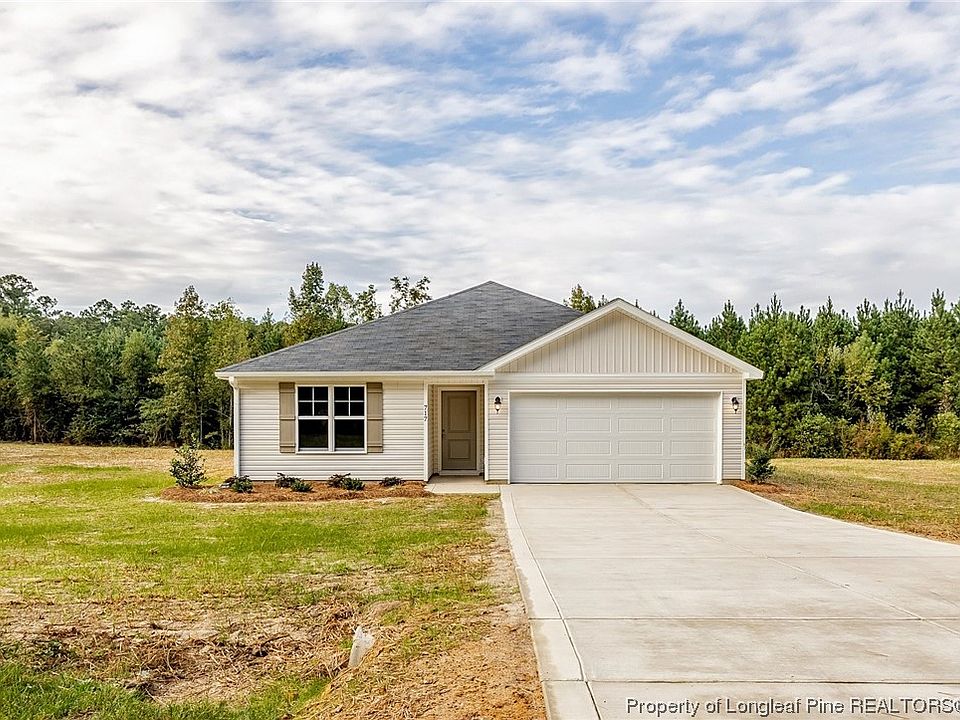 Ben Stout Construction presents The Key Series! Currently under construction with an estimated completion of the end of December. The Sunset Floor Plan is perfect for someone looking for one level living with oversized main living areas. From the covered front porch you enter the foyer and reach a hallway with the two secondary bedrooms and a bathroom with a shower/tub combo. Opposite you will find the mudroom connected to the 2-car garage and laundry room. The open concept floor plan includes a spacious kitchen, dining area, and living room. The kitchen features a breakfast bar, island, large pantry, and lots of cabinetry. The owner's suite is located in the back of the home with a large walk-in closet and a bathroom featuring dual vanities, linen closet, and a walk-in shower. The Ivey Flats neighborhood is located in a country setting, this home is on a 0.46 acre lot. Located approximately 35 mins from Ft Bragg! USDA loan approved area. No HOA!